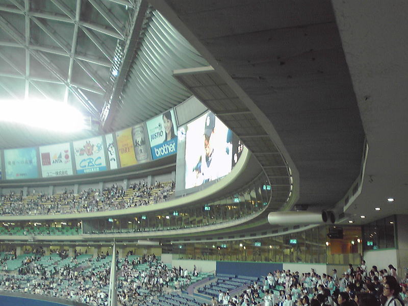 ナゴド観戦してまいりました。この二人が先発という事で、試合時間が長くなるだろうなぁ…と思ってはいましたが(苦笑)。たぶん、新垣の投球を生で見たのは初めてですね。あんなにシュートばっかり投げる投手だとは思わなかった。